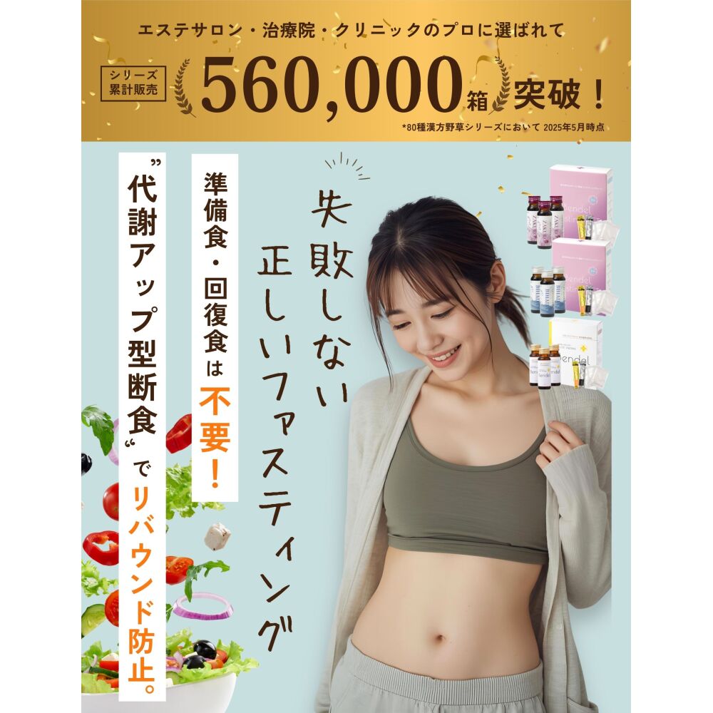 ZAKURO1本(50ml)を1食に置き換えて行うファスティングセットです。女性に嬉しい「ザクロ」と80種類以上の漢方類・野草類・野菜類・果物類を使用した”実感型酵素原液”が新登場。