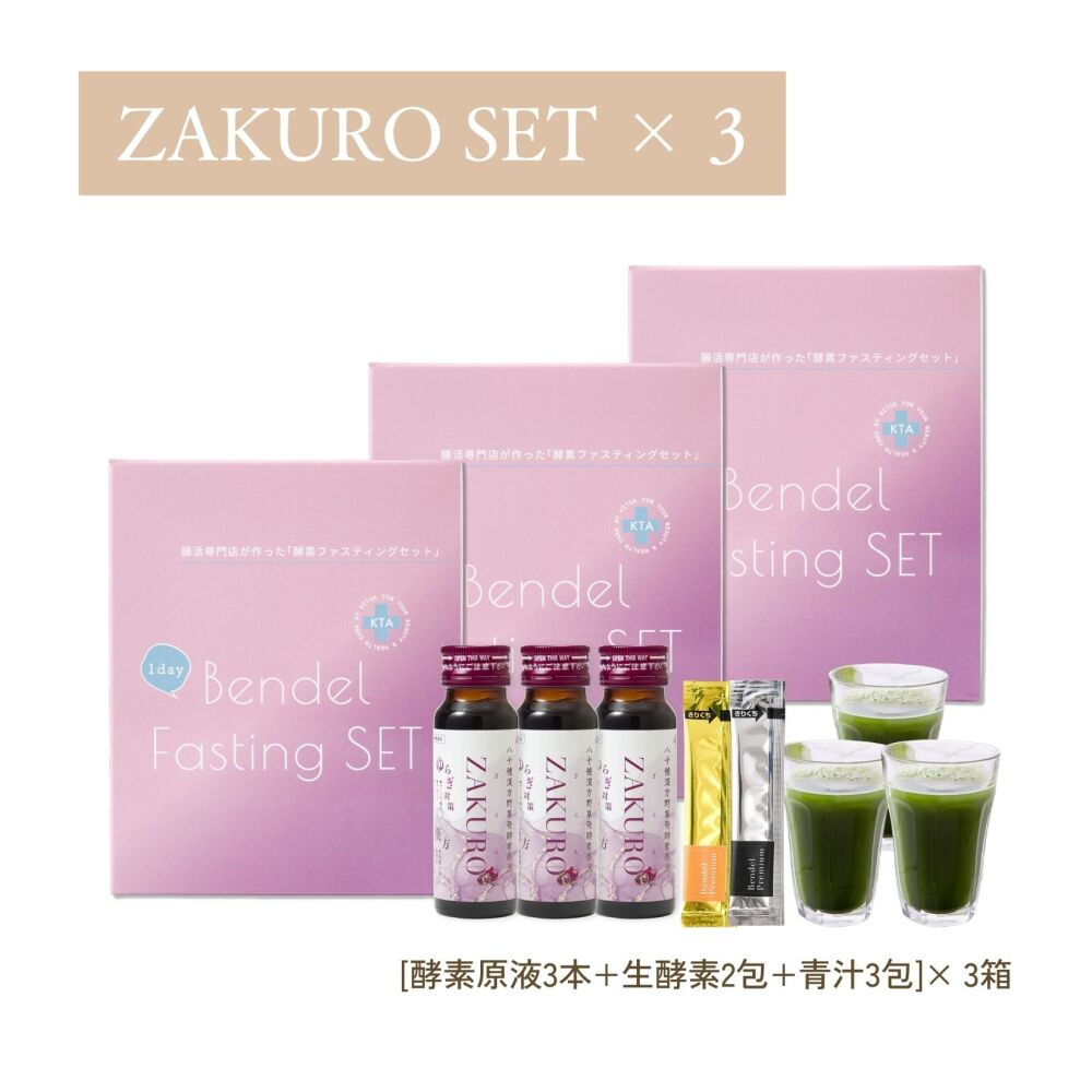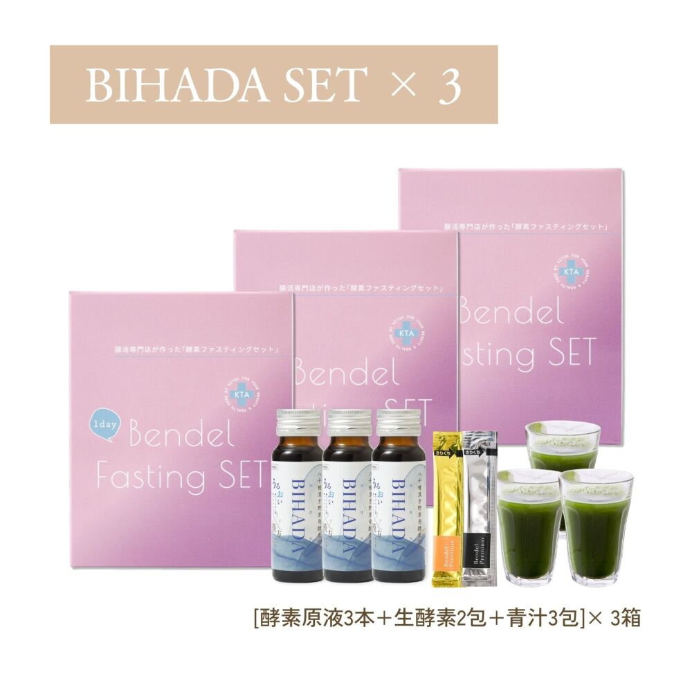 ファスティングセット3箱おまとめ定期便 [内容量]酵素原液 50ml×9本 + ベンデルプレミアム生酵素×6包 + ベンデル青汁×9包 *各種1day Fasting set×3箱セットの定期便です。 毎月の健康美容習慣に3日間ファスティングを。